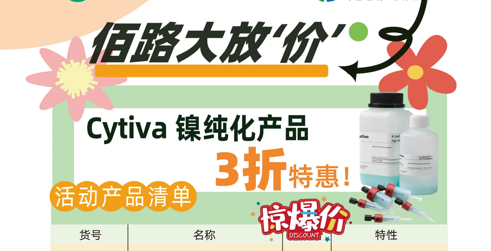 购买清单内任意Cytiva 镍纯化产品,即可享受3折特惠!多买多享优惠哦!