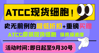 618钜惠!ATCC细胞限时购,现货5588元起!5.23至6.30,新建ATCC账号用户,首单额外立减100元!更多细胞系、肿瘤细胞、菌株、原代细胞等,详情请咨询各区负责人!